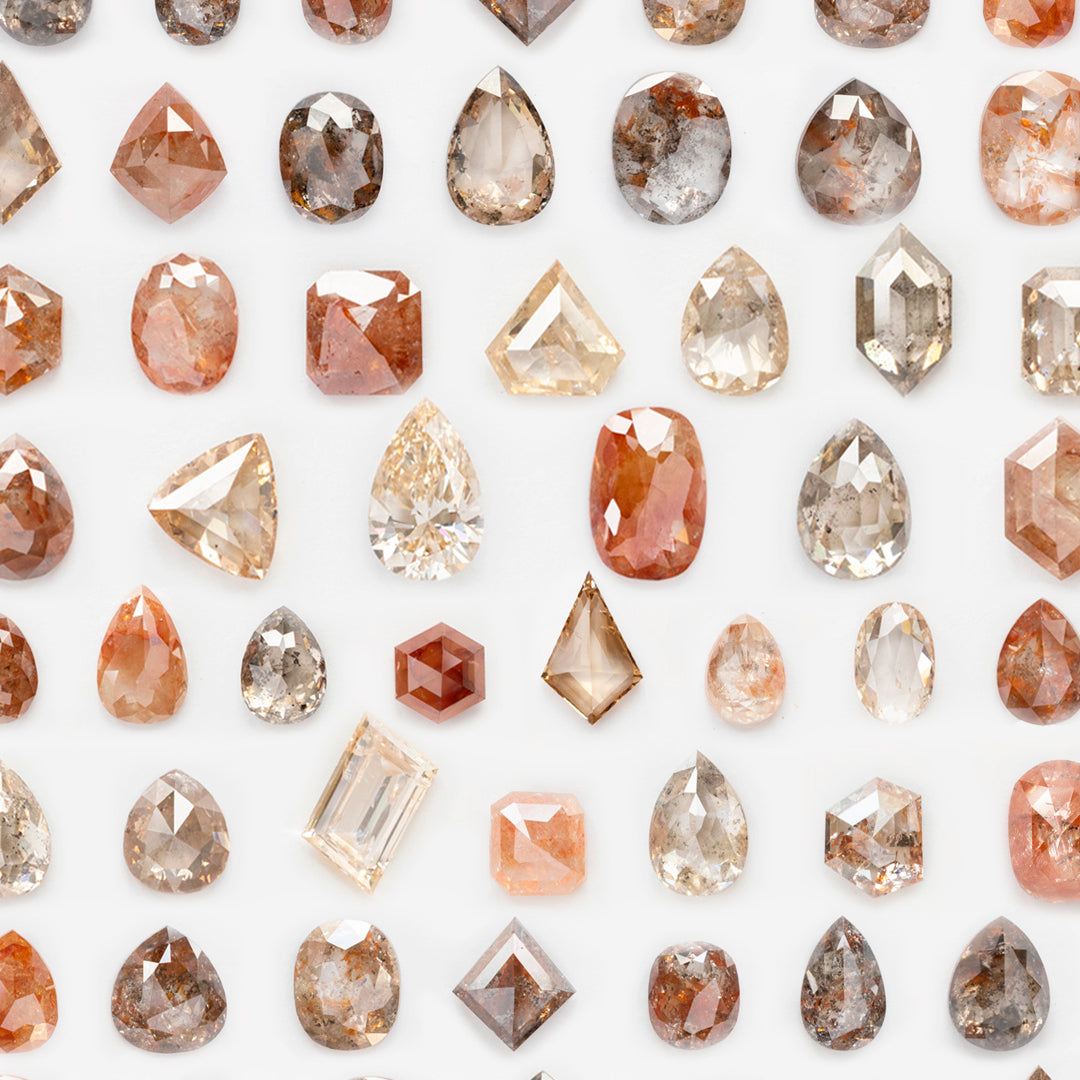 • rose-cut diamond features natural pink coloring + incredible matrix