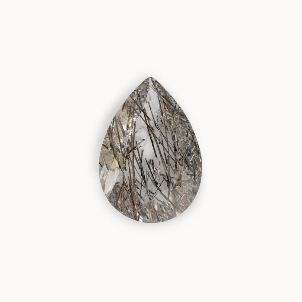 • pear shaped tourmaline in quartz gemstone is set in a v-end and prong setting