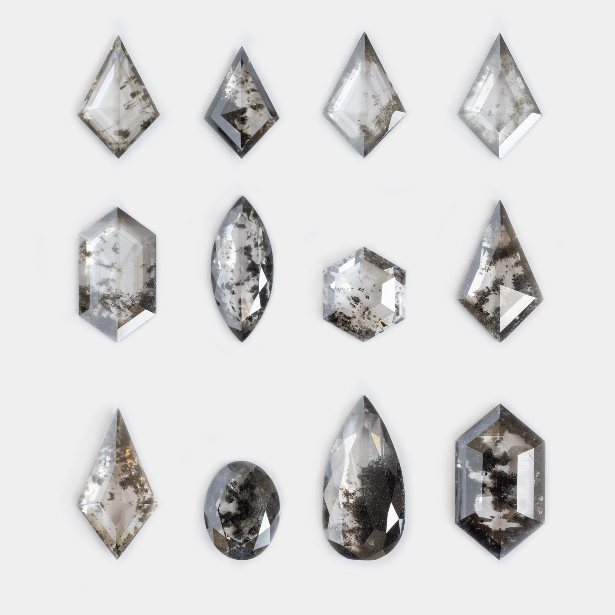 pear shaped lab grown diamond features gorgeous faceting + salt and pepper matrix