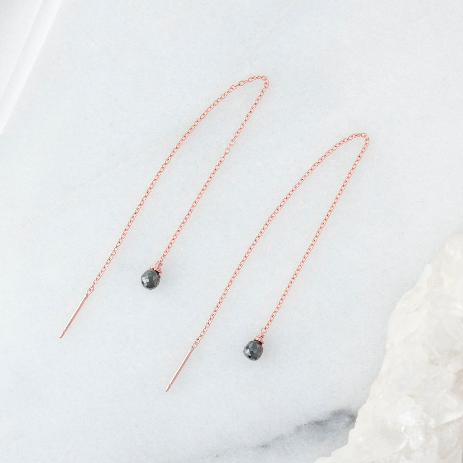 The Simple Black Diamond Drop Thread Earrings