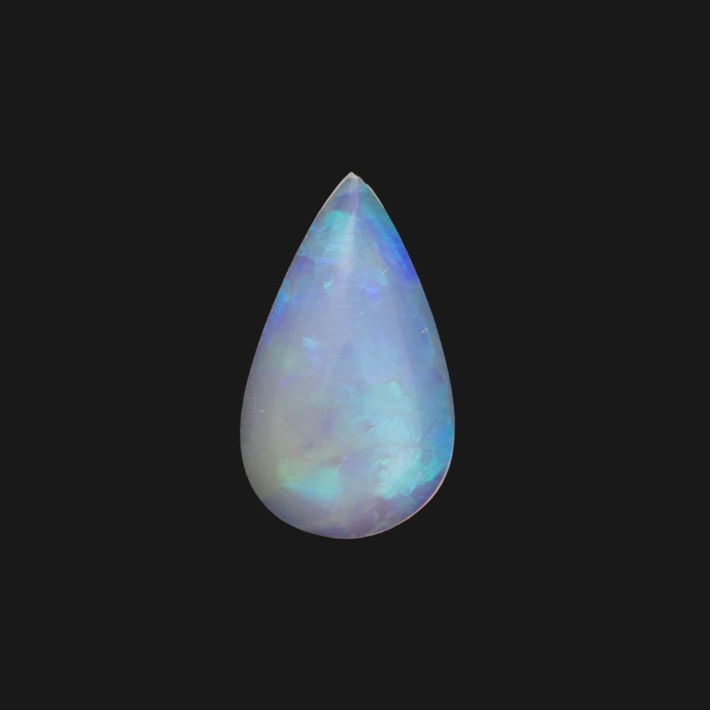 • pear-shaped Australian opal is set in a prong + v-end setting